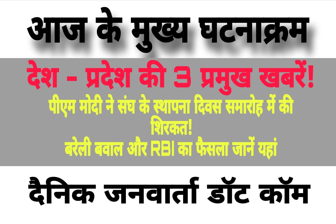आज के मुख्य घटनाक्रम:Top 3 Big News 2025, आरएसएस शताब्दी समारोह में पहुंचे पीएम मोदी , बरेली बवाल में Shocking Arrests, और आरबीआई का बड़ा फैसला