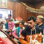 श्रद्धालु माथा टेकते हुए