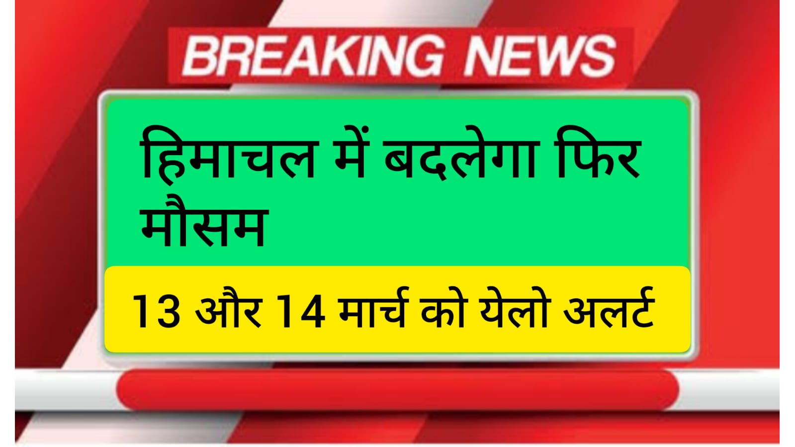 मौसम विज्ञान केंद्र शिमला की ओर से 13 और 14 मार्च को बारिश और बर्फबारी का येलो अलर्ट जारी किया गया है। राज्य के निचले और मध्यवर्ती क्षेत्रों में जहां गर्जना के साथ बारिश होने की संभावना है। वहीं, ऊंचे पर्वतीय क्षेत्रों में हिमपात हो सकता है।