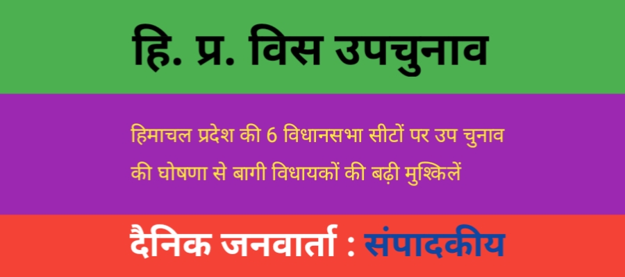 बता दें कि चुनाव आयोग ने हिमाचल प्रदेश विधान सभा की उन 6 सीटों पर उप चुनाव की घोषणा की है, जिन सीटों से कांग्रेस के 6 बागी विधायकों को विधानसभा की सदस्यता से निलंबित किया गया था।