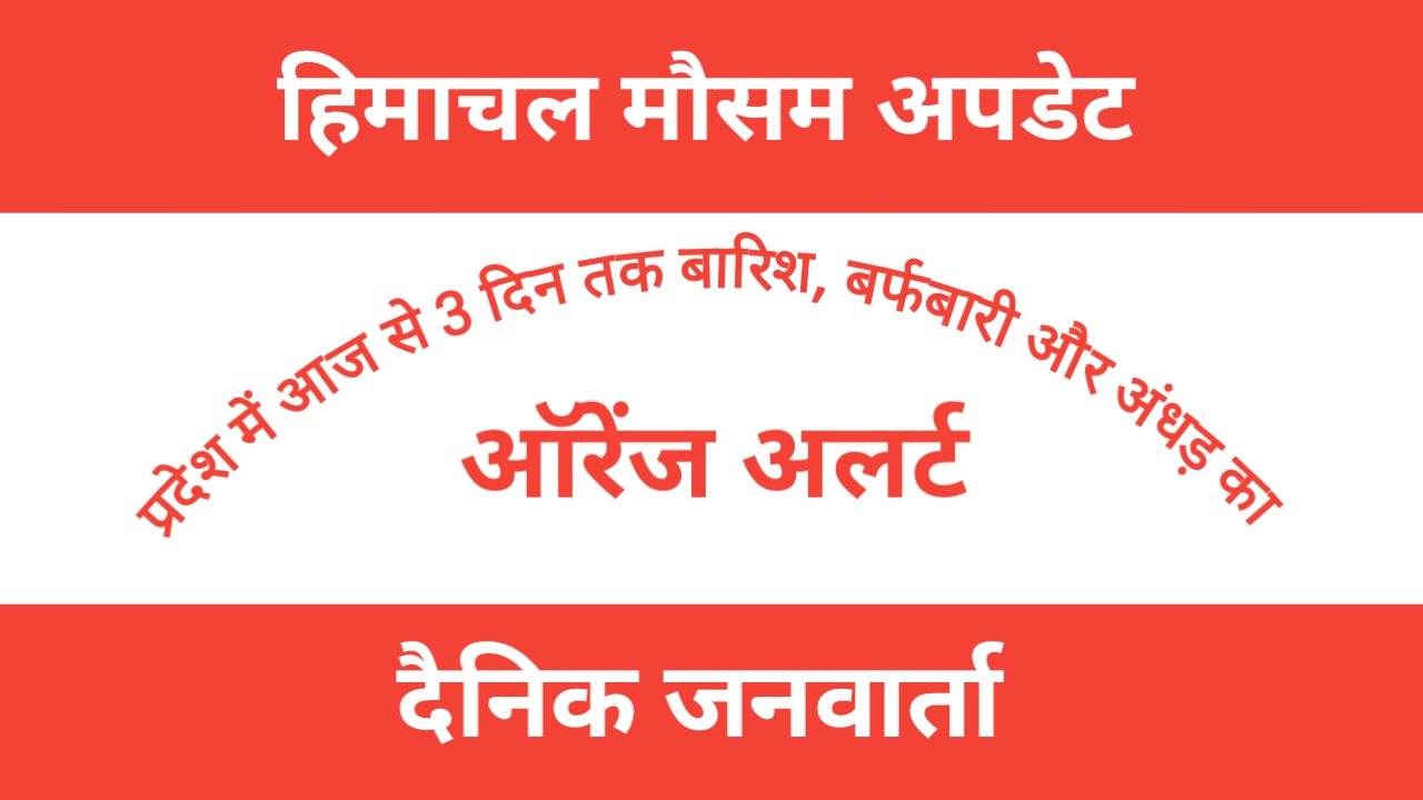 शिमला। हिमाचल प्रदेश में एक बार फिर मौसम विभाग ने अगले तीन दिनों तक भारी बारिश और बर्फबारी के साथ साथ ओलावृष्टि की चेतावनी जारी की है। मौसम विज्ञान केंद्र शिमला ने इस संबंध में प्रदेश के कई जिलों के लिए ऑरेंज अलर्ट जारी किया है।