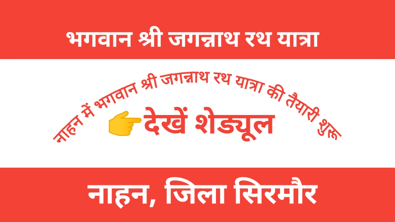 नाहन (सिरमौर)। जिला मुख्यालय नाहन में भगवान श्री जगन्नाथ की 16वीं भव्य रथ यात्रा 7 जुलाई को निकाली जाएगी। इससे पूर्व के आयोजन को लेकर भगवान श्री जगन्नाथ रथ यात्रा मंडल ने कार्यक्रम का शैड्यूल जारी कर दिया है। शेड्यूल के मुताबिक 15 अप्रैल से प्रभात फेरी शुरू हो जाएगी। साथ ही लड्डू गोपाल जी का श्रद्धालुओं के घरों में भव्य अनुष्ठान भी किया जाएगा। ये कार्यक्रम 30 जून तक चलेंगे।