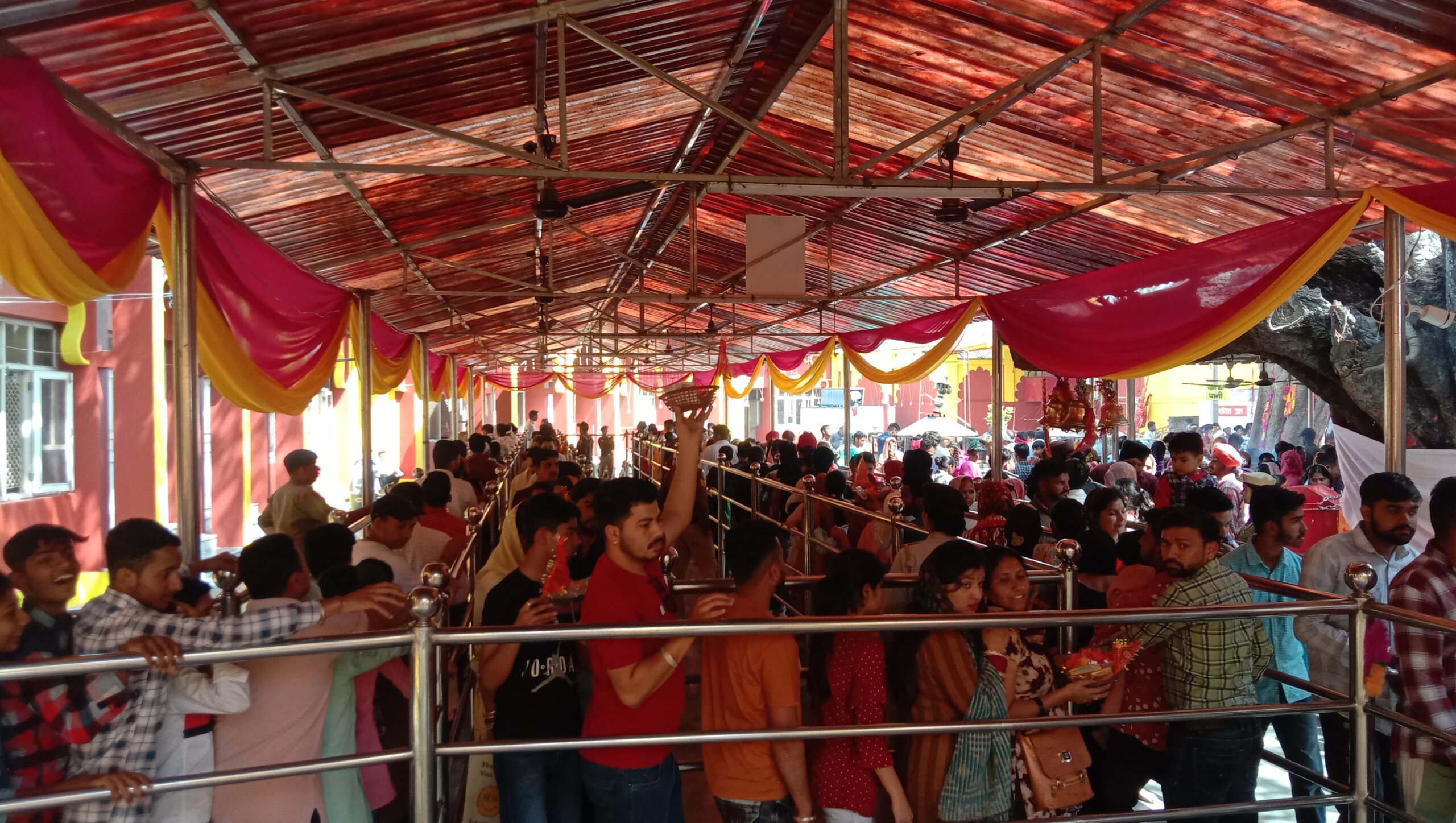 नाहन (सिरमौर)। प्रसिद्ध शक्तिपीठ त्रिलोकपुर में चल रहे चैत्र मास शुक्ल पक्ष नवरात्रि के छठे दिन रविवार को 80000 श्रद्धालुओं ने माथा टेका। इस दौरान 13 लाख रुपए नगद, 2397 ग्राम चांदी और 05 ग्राम 720 मिलीग्राम सोना श्रद्धालुओं ने माता के चरणों में अर्पण किया। रविवार को श्रद्धालुओं की भीड़ को देखते हुए मंदिर न्यास समिति ने मध्यरात्रि से ही मंदिर के कपाट खोल दिए थे। पुश्तैनी भगत परिवार की ओर से पावन आरती की रस्म पूरी की गई। आरती के बाद श्रद्धालुओं ने माता के जयकारे लगाते हुए मंदिर में प्रवेश किया। भीड़ को नियंत्रित करने के लिए बेरिकेडिंग की गई है और श्रद्धालुओं को जत्थों में मंदिर में प्रवेश दिया जा रहा है।