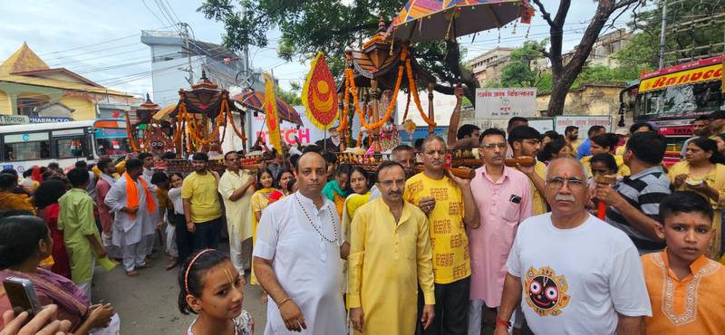 इससे पहले सुबह आरती के बाद बड़ा चौक स्थित भगवान श्री जगन्नाथ मंदिर से पालकी यात्रा शुरू हुई, जो दिल्ली गेट, चौगान, महिमा लाइब्रेरी होते हुए कालीस्थान मंदिर पहुंची। यहां से पालकी यात्रा ऐतिहासिक चौगान मैदान पहुंची, जहां पालकी पर सवार भगवान श्री जगन्नाथ, माता सुभद्रा और बलभद्र को एक-एक रथ पर आरूढ़ किया गया।