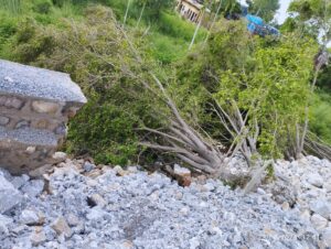 हिमाचल पॉलियोलेफिंस लिमिटेड उद्योग में बारिश से बहा रॉ मैटेरियल (लाइम स्टोन)