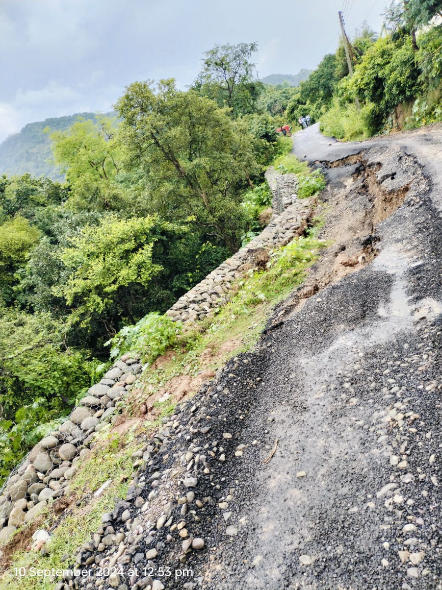 Sirmaur : नारायणगढ़ – सराहां वाया पालियों संपर्क सड़क का गिरा डंगा, यातायात ठप