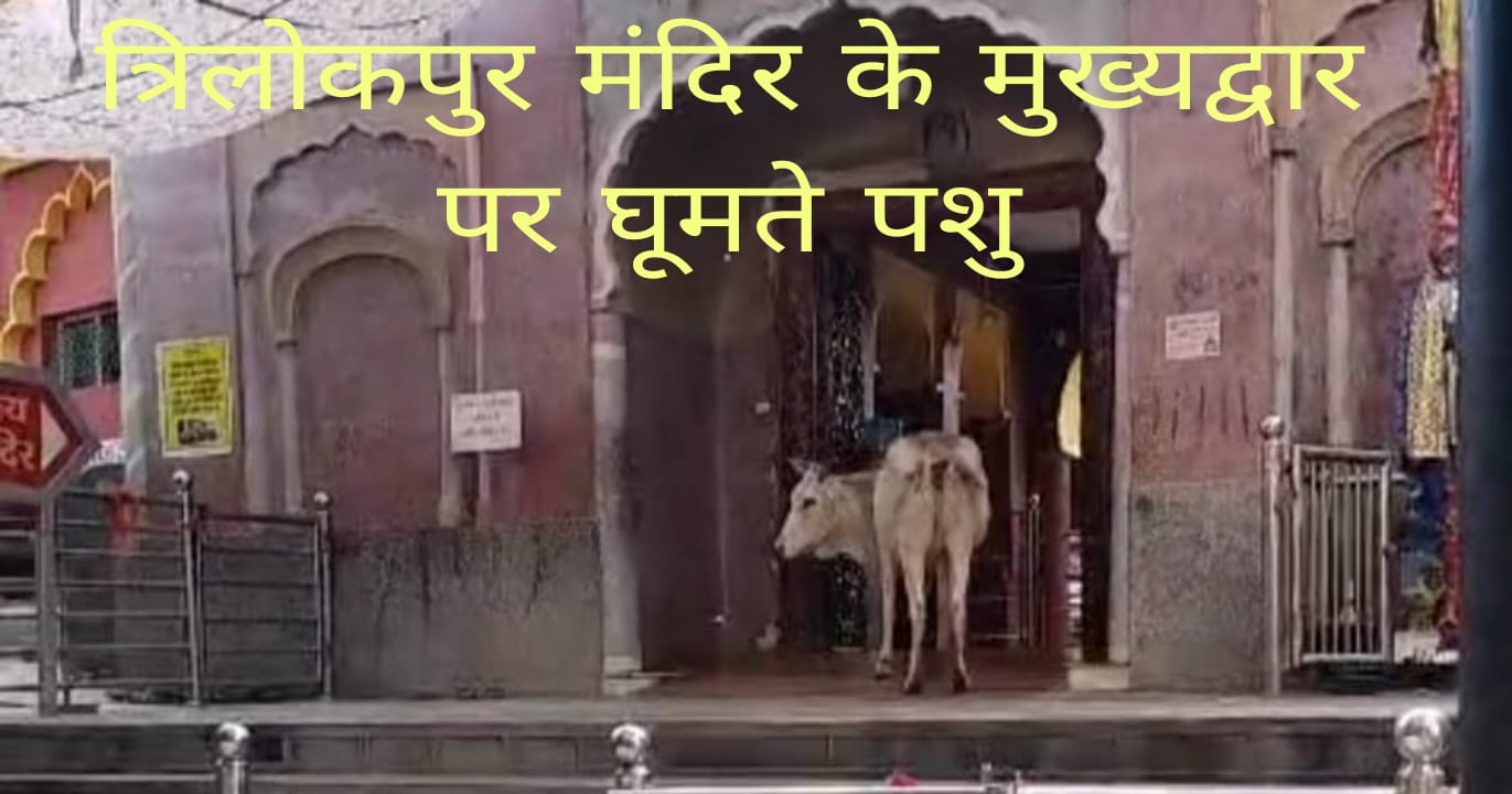 HP News : त्रिलोकपुर मंदिर के मुख्यद्वार पर घूम रहे लावारिस पशु, लोगों और राहगीरों के लिए बन रहे परेशानी का सबब