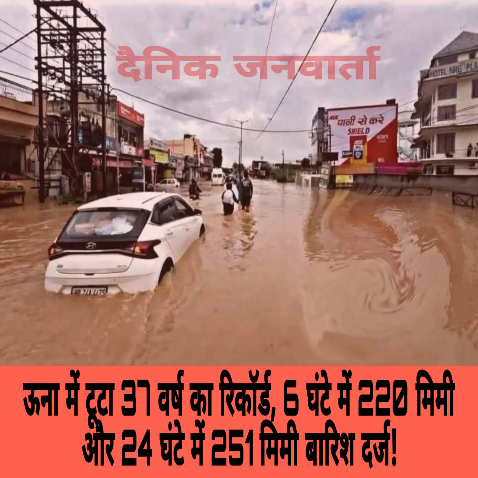 ऊना/शिमला: हिमाचल प्रदेश में मूसलाधार बारिश से हाहाकार मचा हुआ है। मौसम विभाग के यलो अलर्ट के बीच शनिवार को प्रदेश के कई हिस्सों में झमाझम बारिश हुई। ऊना में 6 घंटे में रिकॉर्ड 220 मिमी और 24 घंटे में 251 मिमी बारिश दर्ज की गई। इससे पहले 1988 में ऊना में एक दिन में 198 मिमी बारिश का रिकॉर्ड था।