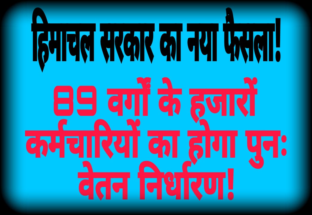 पुनः वेतन निर्धारण: हिमाचल में 89 श्रेणियों के हजारों कर्मचारियों का वेतन नए सिरे से तय, जानें असर