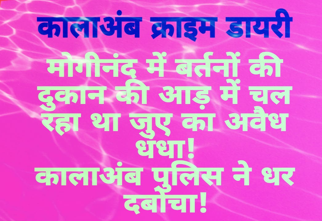 पुलिस ने आरोपी के खिलाफ थाना कालाअंब में जुआ अधिनियम के तहत मामला दर्ज कर लिया है। पुलिस अधिकारियों ने बताया कि जुए का धंधा समाज को खोखला कर रहा है और इस तरह की गतिविधियों में संलिप्त किसी भी व्यक्ति को बख्शा नहीं जाएगा। फिलहाल मामले की जांच जारी है।