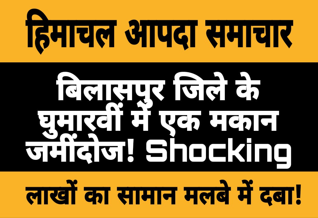 बिलासपु के घुमारवीं में भारी बारिश से एक मकान जमींदोज़ हो गया। गनीमत रही कि जान का नुकसान नहीं हुआ क्योंकि मकान पहले ही असुरक्षित घोषित कर खाली करा लिया गया था। हादसे से तीन परिवार बेघर हो गए और लाखों का सामान मलबे में दब गया। प्रशासन ने प्रभावितों को तिरपाल, राशन और अस्थायी राहत उपलब्ध करवाई है, वहीं स्थायी पुनर्वास और मुआवजे की मांग उठाई गई है।