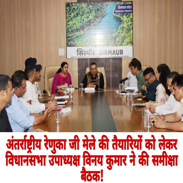 उपाध्यक्ष विनय कुमार ने यह जानकारी नाहन स्थित उपायुक्त कार्यालय के सभागार में विभिन्न विभागों के अधिकारियों के साथ रेणुका जी मेला की तैयारियों को लेकर आयोजित समीक्षा बैठक की अध्यक्षता करते हुए दी। उन्होंने कहा कि रेणुका जी मेला न केवल धार्मिक आस्था का प्रतीक है, बल्कि यह क्षेत्र की सांस्कृतिक धरोहर को भी उजागर करता है। अतः इसकी गरिमा बनाए रखना हम सभी की सामूहिक जिम्मेदारी है।