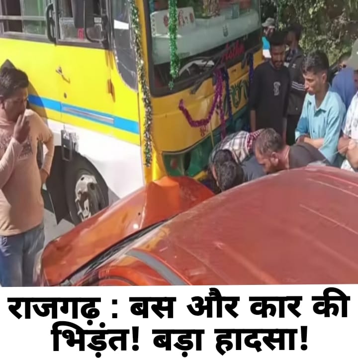 राजगढ़ सड़क दुर्घटना में जीत कोच बस और कार की जोरदार टक्कर
