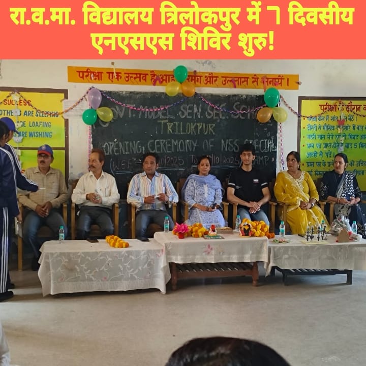 कालाअंब (सिरमौर)। राजकीय वरिष्ठ माध्यमिक विद्यालय त्रिलोकपुर में आज एनएसएस 7 दिवसीय शिविर का शुभारंभ हुआ। कार्यक्रम का उद्घाटन विद्यालय की प्रधानाचार्या प्रिया तोमर ने किया। शिविर में एडवोकेट आशुतोष अग्रवाल ने बतौर मुख्य अतिथि शिरकत की।