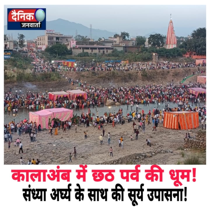 कालाअंब (सिरमौर)। औद्योगिक क्षेत्र कालाअंब में छठ पर्व सोमवार को श्रद्धा, आस्था और उल्लास के साथ मनाया गया। व्रतधारी महिलाओं ने दिनभर निर्जला उपवास रखकर संध्या के समय विधि-विधान से सूर्य भगवान को अर्घ्य अर्पित किया। इस दौरान मारकंडा नदी के तट पर छठी मैया के जयकारे गूंजते रहे और पूरा वातावरण भक्तिमय बना रहा।