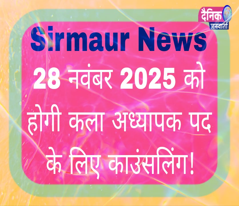 नाहन (सिरमौर)। जिला सिरमौर में कला अध्यापक पद के लिए काउंसलिंग 28 नवंबर, 2025 को आयोजित की जाएगी। यह जानकारी उप निदेशक स्कूल शिक्षा प्रारंभिक सिरमौर राजीव ठाकुर ने दी।