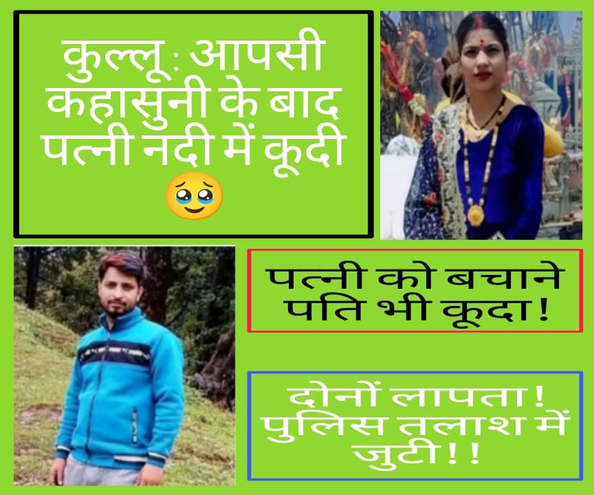 कुल्लू : कुल्लू और मंडी जिला की सीमा पर स्थित बेहना–माहोली पुल के पास एक दर्दनाक घटना सामने आई है। बताया जा रहा है कि पति-पत्नी के बीच एक रात पहले कहासुनी होने के बाद बुधवार सुबह पत्नी अचानक सतलुज नदी में कूद गई। उसे बचाने के प्रयास में पति भी नदी में छलांग लगा बैठा, जिसके बाद दोनों लापता हो गए।