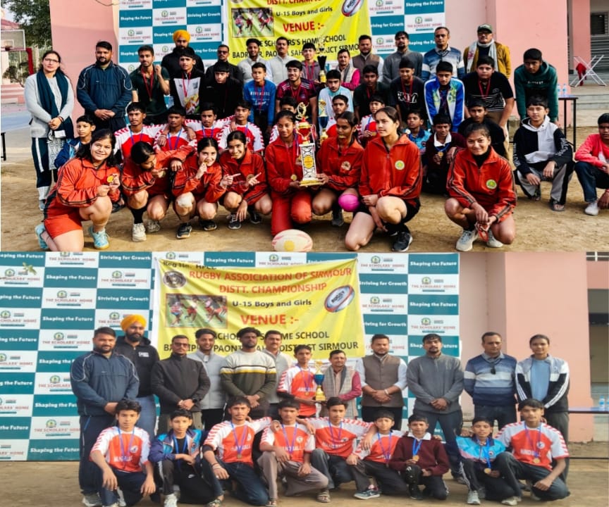 पांवटा साहिब (सिरमौर)। रगबी एसोसिएशन ऑफ सिरमौर के तत्वावधान में पांवटा साहिब में जिला स्तरीय सब जूनियर रगबी प्रतियोगिता का सफल आयोजन किया गया। प्रतियोगिता के समापन समारोह में समाजसेवी पवन चौधरी ने बतौर मुख्य अतिथि शिरकत की और विजेता व उपविजेता टीमों के खिलाड़ियों को ट्रॉफी एवं मेडल प्रदान कर सम्मानित किया।