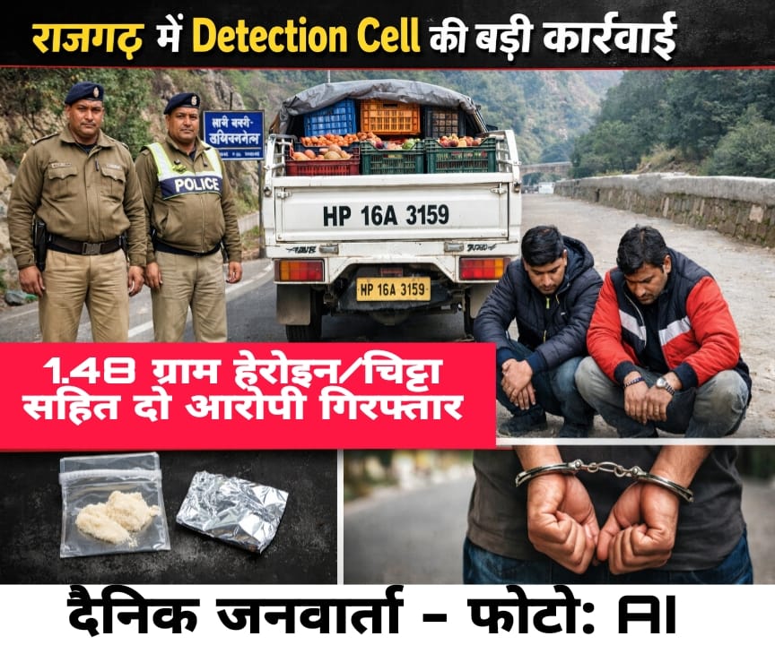राजगढ़ (सिरमौर)। रविवार को Detection Cell पुलिस उप-मंडल राजगढ़, जिला सिरमौर की टीम गश्त पर थी। इस दौरान पुलिस चौकी यशवंतनगर के अंतर्गत गिरिपुल के पास नाके पर सोलन की ओर से आ रही एक गाड़ी को जांच के लिए रोका गया।