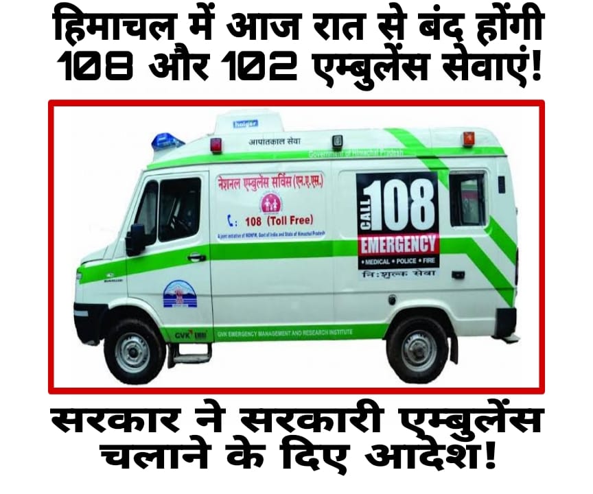 हिमाचल में 108 और 102 एंबुलेंस सेवाएं आज रात से बंद