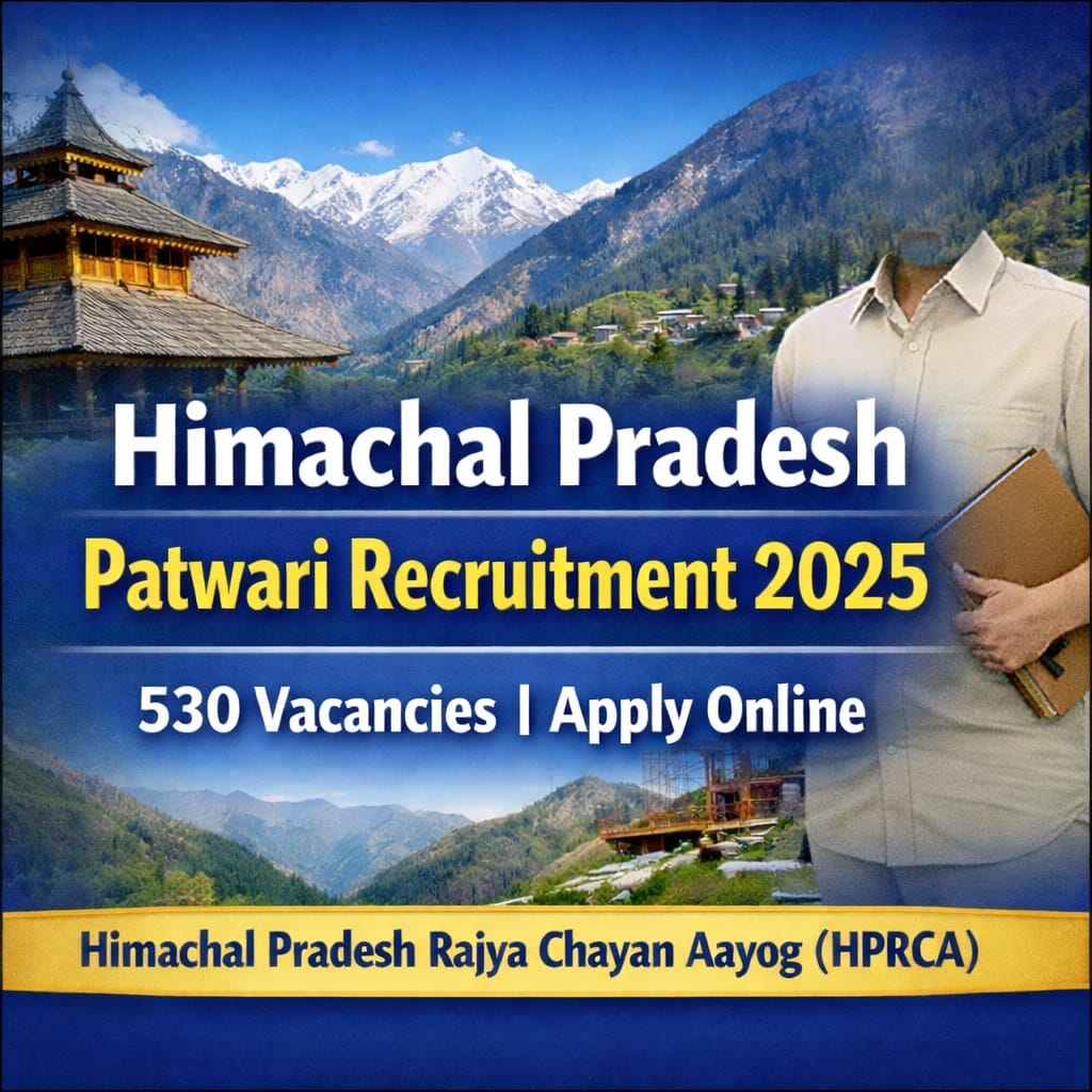 हमीरपुर। हिमाचल प्रदेश के युवाओं के लिए सरकारी नौकरी पाने का एक बड़ा अवसर सामने आया है। हिमाचल प्रदेश राज्य चयन आयोग (HPRCA), हमीरपुर ने राजस्व विभाग के अंतर्गत पटवारी (जॉब ट्रेनी) पदों पर भर्ती के लिए विज्ञापन संख्या 08/2025 जारी कर दिया है। यह भर्ती अभियान प्रदेश की सबसे चर्चित और बहुप्रतीक्षित भर्तियों में शामिल है। हिमाचल प्रदेश राज्य चयन आयोग के इस नोटिफिकेशन के तहत कुल 530 पदों को भरा जाएगा।