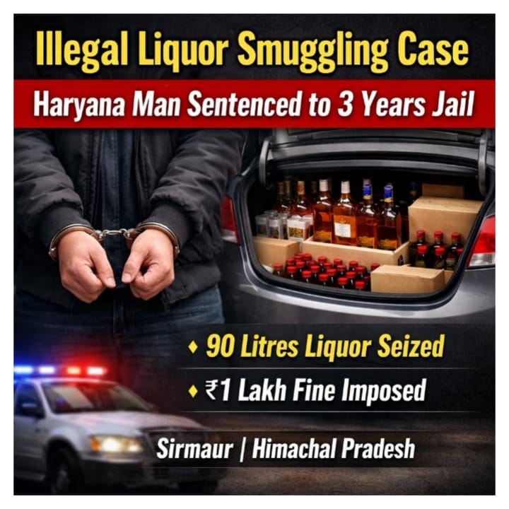 नाहन (सिरमौर)। अवैध शराब तस्करी के एक गंभीर मामले में न्यायालय ने आरोपी को दोषी करार देते हुए तीन वर्ष के कठोर कारावास की सजा सुनाई है। इसके साथ ही अदालत ने अवैध शराब तस्करी में संलिप्त आरोपी पर एक लाख रुपये का जुर्माना भी लगाया है। जुर्माना अदा न करने की स्थिति में आरोपी को अतिरिक्त सजा भुगतनी होगी।