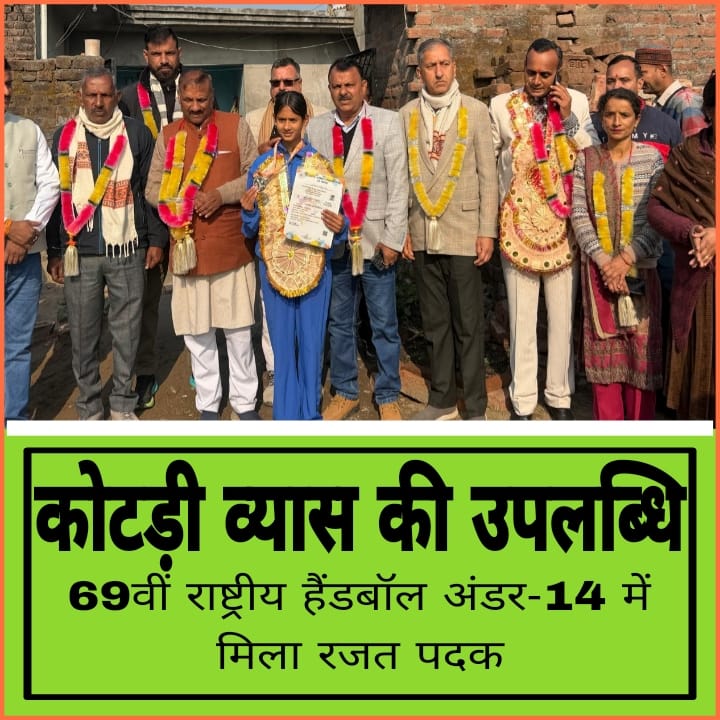 चित्तौड़गढ़ में आयोजित 69वीं राष्ट्रीय हैंडबॉल अंडर-14 प्रतियोगिता में कोटड़ी व्यास के खिलाड़ियों ने मनीषा की कप्तानी और कोच एवं चीफ द मिशन धर्मेन्द्र चौधरी के मार्गदर्शन में राष्ट्रीय स्तर पर हिमाचल प्रदेश को ये उपलब्धि दिलाई है। एक अन्य कोच स्नेह लता भी बधाई की पात्र हैं, जिनके मार्गदर्शन में फाइनल मुकाबले में कोटड़ी व्यास टीम ने राजस्थान टीम को कड़ी टक्कर दी।
