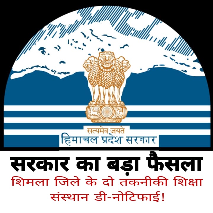शिमला: हिमाचल प्रदेश सरकार ने शिमला जिले के दूरदराज क्षेत्रों में संचालित दो राजकीय औद्योगिक प्रशिक्षण संस्थानों डोडरा-क्वार-देहा आईटीआई डी-नोटिफाई करने का अहम निर्णय लिया है। शून्य दाखिले की स्थिति को देखते हुए आईटीआई डोडरा-क्वार और आईटीआई देहा को तत्काल प्रभाव से डी-नोटिफाई कर दिया गया है। इसके साथ ही इन दोनों संस्थानों में स्वीकृत व सृजित सभी पदों को समाप्त करने के आदेश जारी किए गए हैं।