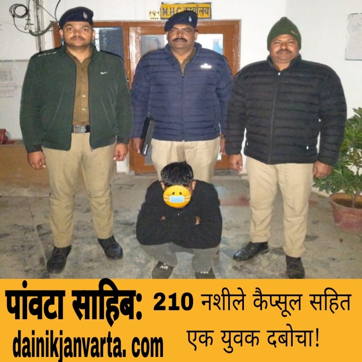 पांवटा साहिब (सिरमौर)। पुरुवाला पुलिस ने एक व्यक्ति को नशीले कैप्सूल सहित दबोचने में सफलता हासिल की है। आरोपी के खिलाफ पुलिस ने आगामी कार्रवाई शुरू कर दी है। आरोपी की पहचान सन्नी सिंह पुत्र उमेश कुमार, निवासी गांव नुरपुर, तहसील चांदपुर, जिला बिजनौर, उत्तर प्रदेश के रूप में हुई है।