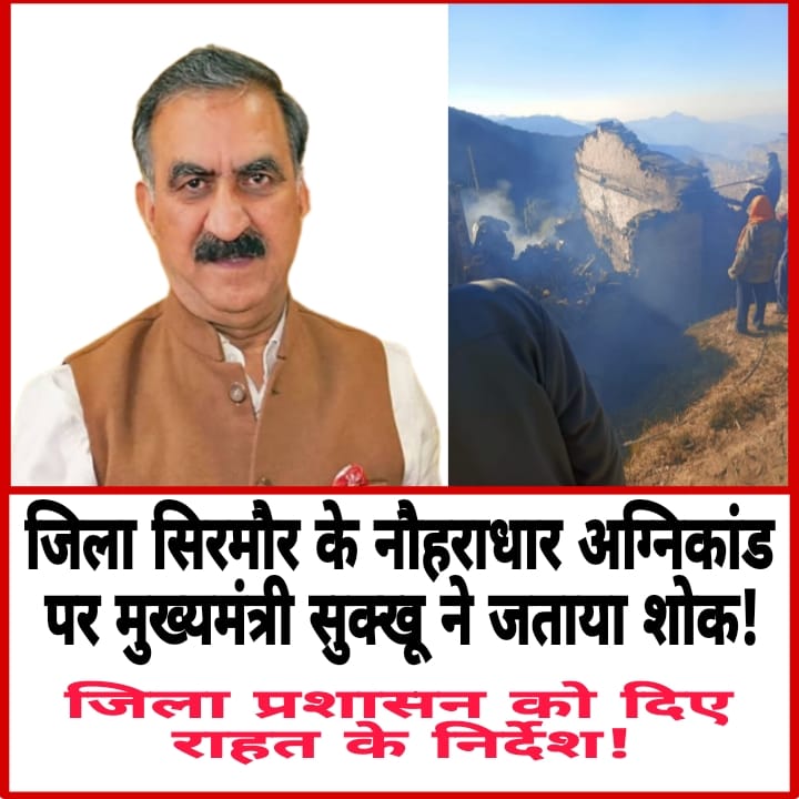 शिमला/नाहन (सिरमौर)। जिला सिरमौर के नौहराधार क्षेत्र में हुई दर्दनाक आगजनी की घटना पर मुख्यमंत्री ठाकुर सुखविंद्र सिंह सुक्खू ने गहरा शोक व्यक्त किया है। श्री रेणुकाजी विधानसभा क्षेत्र की ग्राम पंचायत घंडूरी के गांव तलांगना में बीती रात लगी भीषण आग में छह लोगों की मौत हो गई, जिससे पूरे क्षेत्र में शोक की लहर है।