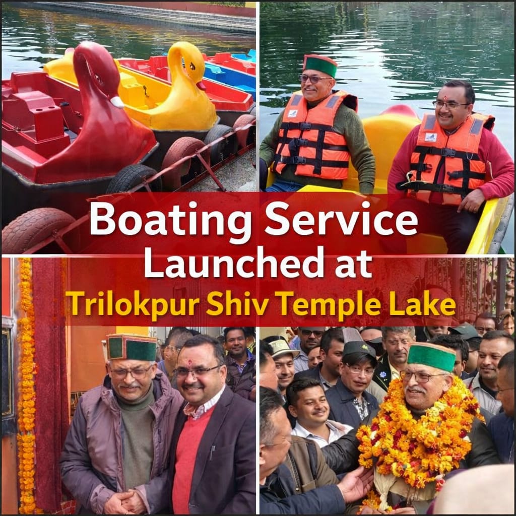 कालाअंब (सिरमौर)। जिला सिरमौर के प्रसिद्ध शक्तिपीठ त्रिलोकपुर में धार्मिक पर्यटन को बढ़ावा देने की दिशा में एक और महत्वपूर्ण कदम उठाया गया है। शनिवार को त्रिलोकपुर स्थित शिव मंदिर ताल में नौकायन सेवा का विधिवत शुभारंभ किया गया। नाहन के विधायक अजय सोलंकी ने बतौर मुख्य अतिथि इस सेवा का उद्घाटन किया। कार्यक्रम में मंदिर न्यास, प्रशासन और बड़ी संख्या में लोग उपस्थित रहे।