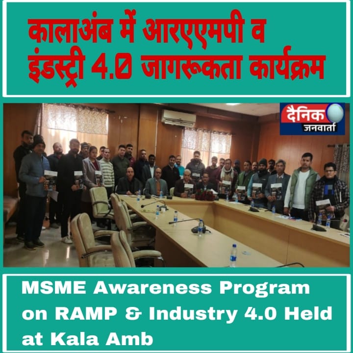 नाहन (सिरमौर)। सूक्ष्म, लघु एवं मध्यम उद्यमों (एमएसएमई) को आधुनिक तकनीकों से जोड़ने के उद्देश्य से कालाअंब में आरएएमपी व इंडस्ट्री 4.0 पर जागरूकता कार्यक्रम का आयोजन किया गया। यह कार्यक्रम उद्योग विभाग केंद्र नाहन के मार्गदर्शन में आयोजित हुआ, जिसमें क्षेत्र के उद्यमियों और उद्योग प्रतिनिधियों ने उत्साहपूर्वक भाग लिया।