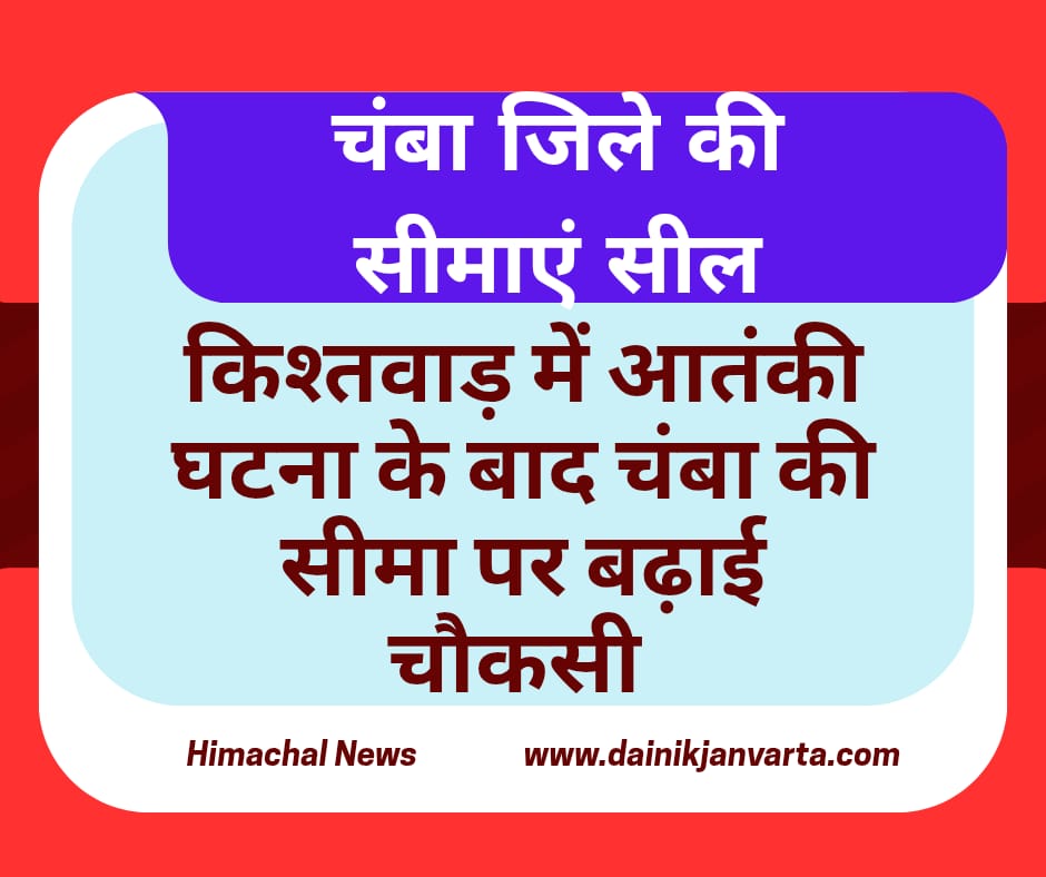 गौरतलब है कि चंबा जिले की लगभग 216 किलोमीटर लंबी सीमा जम्मू-कश्मीर के संवेदनशील जिलों डोडा और कठुआ से लगती है। किश्तवाड़ में हुई आतंकी घटना के बाद तीन आतंकियों के फरार होने की सूचना है, जिनकी तलाश में सेना और सुरक्षा एजेंसियां व्यापक स्तर पर अभियान चला रही हैं।