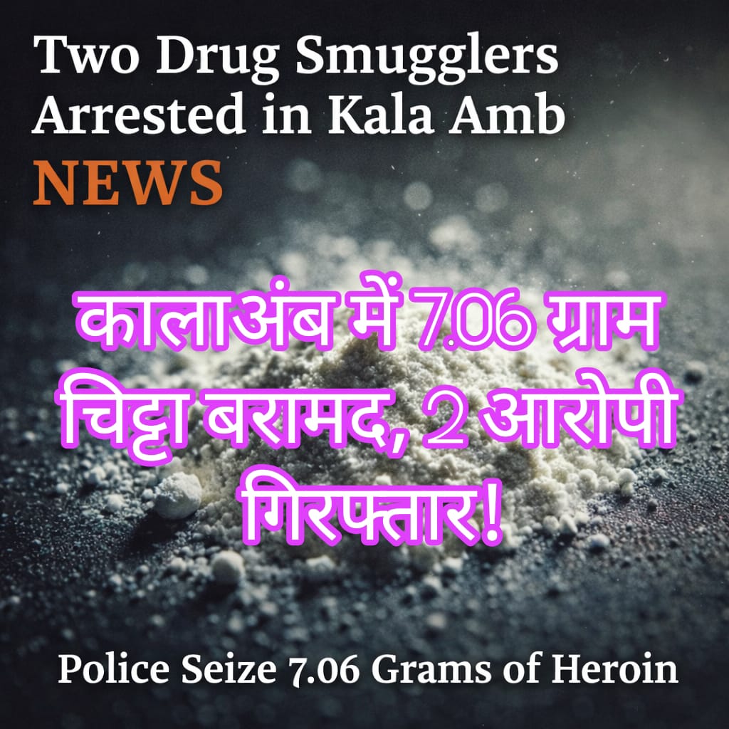 कालाअंब (सिरमौर)। औद्योगिक क्षेत्र कालाअंब में पुलिस ने मादक पदार्थ तस्करी के खिलाफ बड़ी कार्रवाई करते हुए दो आरोपियों को गिरफ्तार किया है। पुलिस ने आरोपियों के कब्जे से 7.06 ग्राम हेरोइन/चिट्टा बरामद किया है। इस कार्रवाई से कालाअंब क्षेत्र में नशा तस्करों में हड़कंप मच गया है।