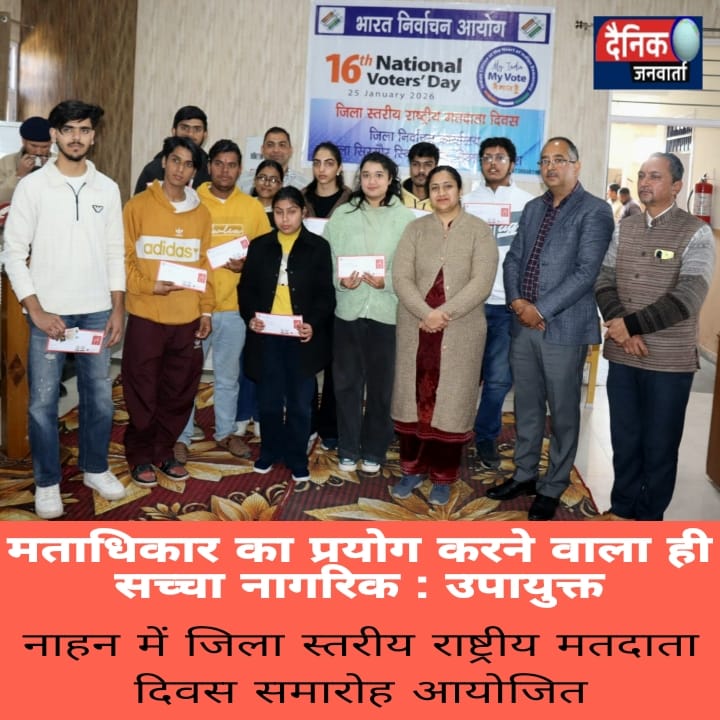 नाहन में जिला स्तरीय राष्ट्रीय मतदाता दिवस समारोह आयोजित