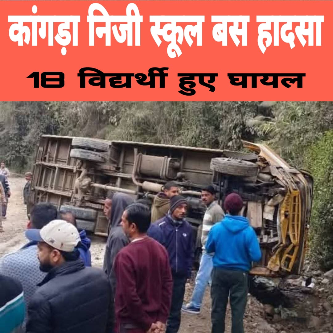 कांगड़ा। जिले के जयसिंहपुर क्षेत्र में मंगलवार सुबह एक बड़ा सड़क हादसा सामने आया है। शिवनगर के पास एक निजी स्कूल की बस अचानक अनियंत्रित होकर सड़क किनारे पलट गई, जिससे बस में सवार 18 विद्यार्थी घायल हो गए। हादसे के बाद मौके पर अफरा-तफरी मच गई और स्थानीय लोगों ने तुरंत राहत कार्य शुरू किया।
