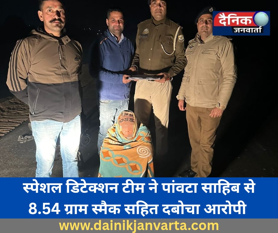 पांवटा साहिब में स्पेशल डिटेक्शन टीम ने 8.54 ग्राम हैरोइन के साथ आरोपी किया गिरफ्तार