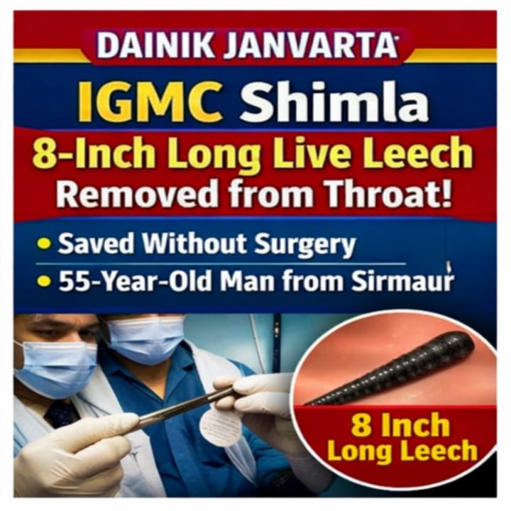 शिमला। इंदिरा गांधी मेडिकल कॉलेज (आईजीएमसी) शिमला में चिकित्सकों ने एक दुर्लभ और चौंकाने वाला मामला सामने आने पर बड़ी चिकित्सकीय सफलता हासिल की है। सिरमौर जिले के 55 वर्षीय मरीज के गले में फंसी करीब आठ इंच लंबी जिंदा जोंक को डॉक्टरों की टीम ने बिना किसी ऑपरेशन के सुरक्षित बाहर निकाल लिया।