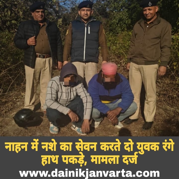 नाहन में नशे का सेवन करते दो युवक रंगे हाथ पकड़े, पुलिस ने दर्ज किया मामला