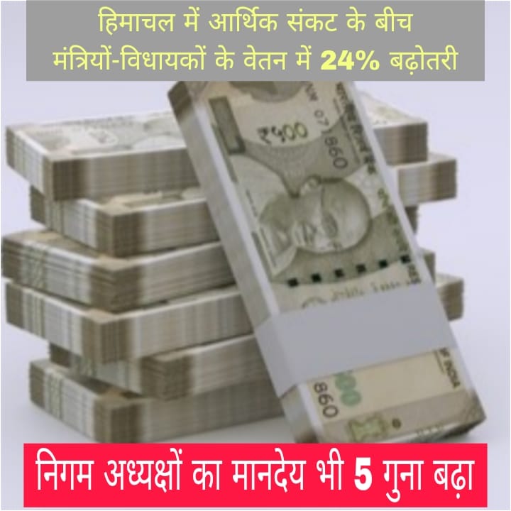 शिमला। हिमाचल प्रदेश में आर्थिक संकट की स्थिति सुधारने के नाम पर जहां सरकार आम जनता की सब्सिडी, नई भर्तियों और कर्मचारियों-पेंशनरों के वित्तीय लाभों में कटौती की बात कर रही है, वहीं सियासी पदों पर होने वाले खर्च लगातार बढ़ते जा रहे हैं। बीते एक वर्ष के दौरान मंत्री-विधायकों के वेतन-भत्तों में लगभग 24 प्रतिशत की बढ़ोतरी दर्ज की गई है, जबकि निगम-बोर्डों के अध्यक्षों और उपाध्यक्षों का मानदेय पहले की तुलना में कई गुना कर दिया गया है।