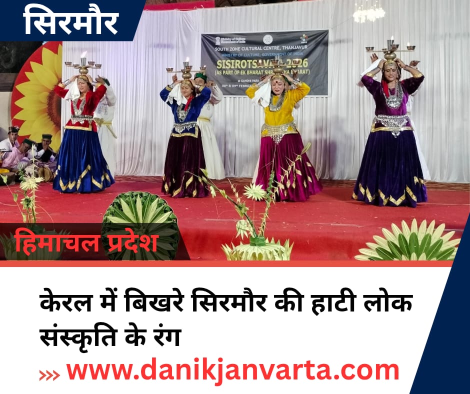 राजगढ़ (सिरमौर)। पर्यटन के लिए प्रसिद्ध राज्य केरल में इन दिनों हिमाचल प्रदेश के सिरमौर जिले की समृद्ध हाटी लोकसंस्कृति अपनी अनूठी छटा बिखेर रही है। आसरा संस्था पझौता से जुड़े लोक कलाकार केरल में अपनी सशक्त प्रस्तुतियों के माध्यम से गिरीपार क्षेत्र की पारंपरिक सांस्कृतिक विरासत को राष्ट्रीय मंच पर पहचान दिला रहे हैं।