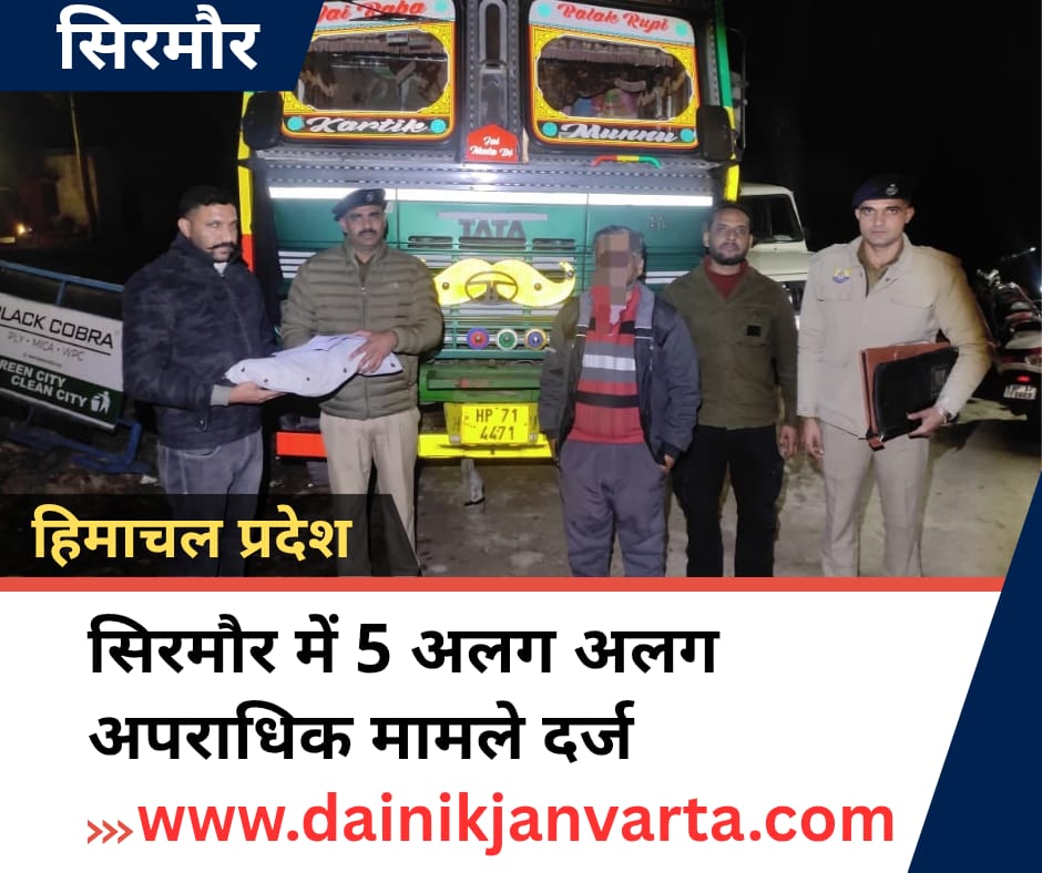 सिरमौर में 5 अलग अलग आपराधिक मामले दर्ज, नशा और अवैध शराब तस्करी पर पुलिस का कड़ा प्रहार
