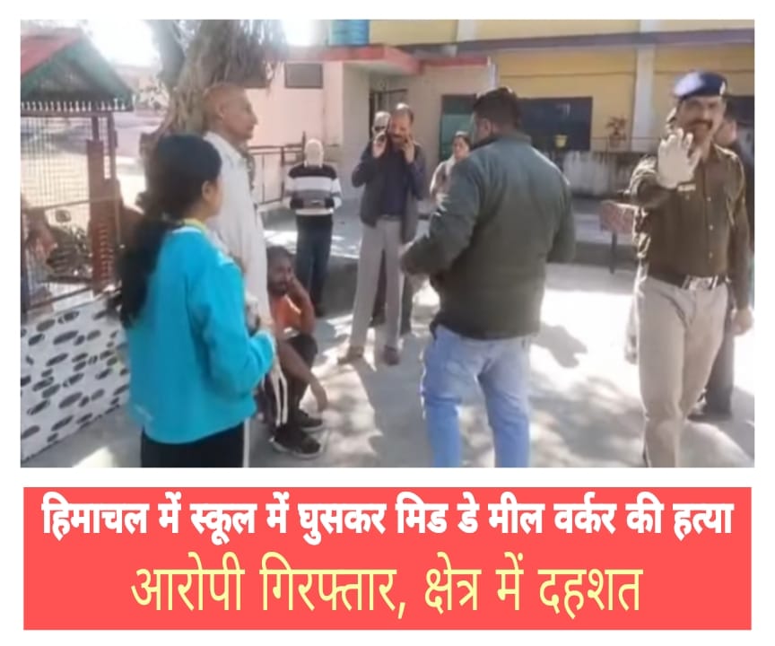 कांगड़ा। कांगड़ा जिले के देहरा उपमंडल की ग्राम पंचायत चनौर स्थित राजकीय प्राथमिक पाठशाला में गुरुवार दोपहर एक दिल दहला देने वाली घटना सामने आई। एक सिरफिरे व्यक्ति ने स्कूल में घुसकर मिड-डे मील वर्कर पर दराती से ताबड़तोड़ हमला कर उसकी बेरहमी से हत्या कर दी। घटना के दौरान स्कूल में अफरा-तफरी मच गई और बच्चों व शिक्षकों में दहशत फैल गई।