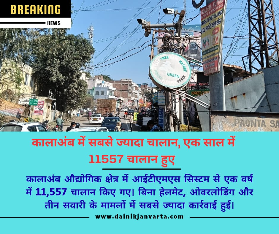 कालाअंब में आईटीएमएस सिस्टम से एक साल में 11,557 चालान