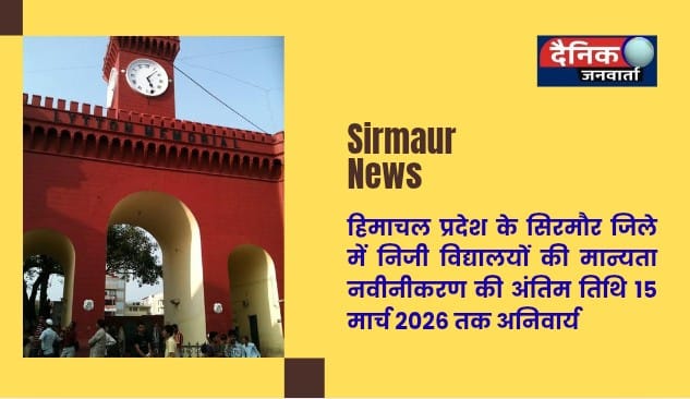 नाहन (सिरमौर)। हिमाचल प्रदेश के सिरमौर जिले में निजी स्कूलों की मान्यता नवीनीकरण और नई मान्यता प्रक्रिया को लेकर शिक्षा विभाग ने अहम सूचना जारी की है। उपनिदेशक प्रारंभिक शिक्षा राजीव ठाकुर ने बताया कि शैक्षणिक सत्र 2026-27 के लिए निजी विद्यालयों की मान्यता नवीनीकरण तथा वर्ष 2026-31 तक नई मान्यता के आवेदन केवल ऑनलाइन माध्यम से ही स्वीकार किए जाएंगे।