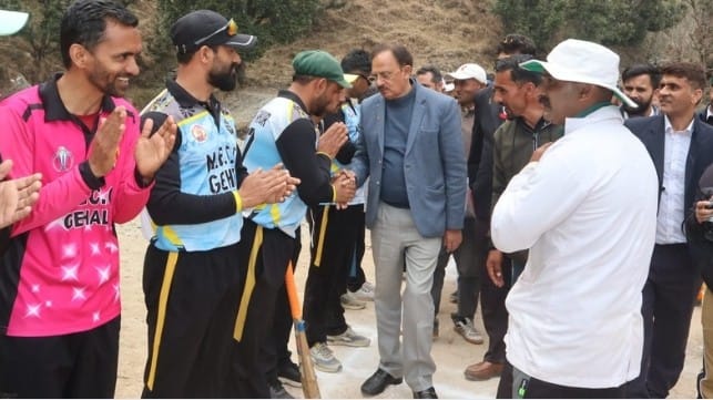 नाहन (सिरमौर), 22 फरवरी। उद्योग, संसदीय कार्य एवं श्रम रोजगार मंत्री हर्षवर्धन चौहान ने जिला सिरमौर की शिलाई विधानसभा क्षेत्र की डाहर पंचायत में आयोजित हाटी चैंपियनशिप क्रिकेट प्रतियोगिता-2026 के समापन समारोह में बतौर मुख्य अतिथि शिरकत की। डाहर पहुंचने पर स्थानीय लोगों ने पारंपरिक वाद्य यंत्रों के साथ उनका भव्य स्वागत किया।