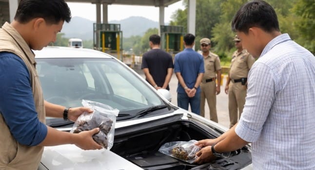 मिली जानकारी के अनुसार मंगलवार रात पुलिस थाना घुमारवीं की टीम टोल प्लाजा के पास वाहनों की नियमित जांच कर रही थी। इसी दौरान मंडी की दिशा से आ रही एक कार को शक के आधार पर रोका गया। प्रारंभिक पूछताछ के दौरान वाहन सवार युवकों के जवाब संतोषजनक नहीं लगे, जिसके बाद पुलिस ने कार की गहन तलाशी ली।