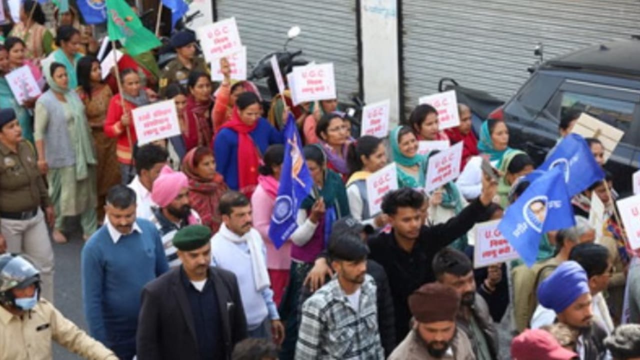 कांगड़ा। कांगड़ा जिले के धर्मशाला में शनिवार को ओबीसी, एससी और एसटी समुदायों ने यूजीसी के नए नियमों के समर्थन में जोरदार शक्ति प्रदर्शन किया। दाड़ी मेला ग्राउंड से शुरू हुई यह रैली मुख्य बाजारों से गुजरते हुए उपायुक्त कार्यालय तक पहुंची, जहां प्रदर्शनकारियों ने अपनी मांगों को लेकर नारेबाजी की और ज्ञापन सौंपा।