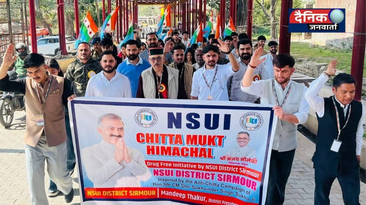 नाहन (सिरमौर)। नशे के बढ़ते प्रचलन को लेकर युवाओं में चिंता अब खुलकर सामने आने लगी है। मंगलवार को त्रिलोकपुर में NSUI के बैनर तले चिट्टे और अन्य नशीले पदार्थों के खिलाफ एक प्रभावशाली जागरूकता रैली निकाली गई।
