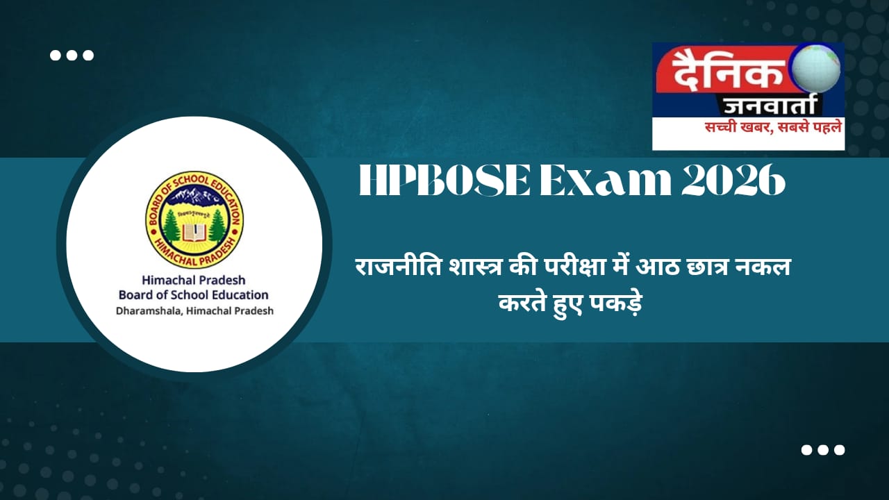 धर्मशाला (कांगड़ा)। हिमाचल प्रदेश में चल रही बोर्ड परीक्षाओं के बीच नकल पर सख्त कार्रवाई देखने को मिली है। हिमाचल प्रदेश बोर्ड ऑफ स्कूल एजुकेशन (HPBOSE) की ओर से आयोजित 12वीं कक्षा की राजनीति शास्त्र की परीक्षा के दौरान उड़नदस्तों ने 8 परीक्षार्थियों को नकल सामग्री के साथ रंगे हाथ पकड़ लिया।